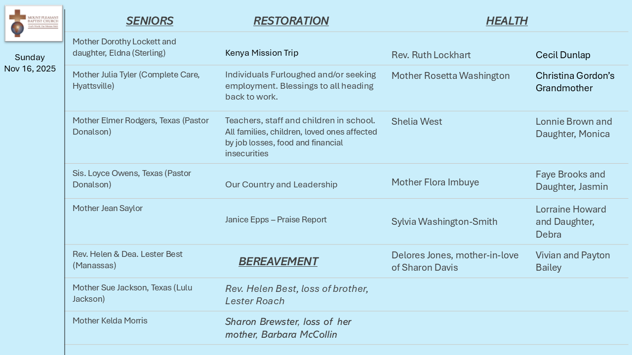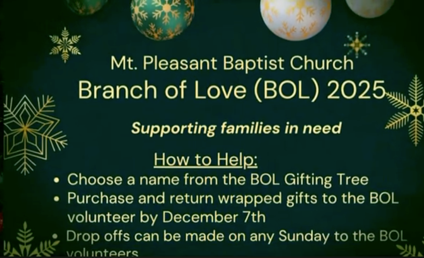 The MPBC Gifting Tree will be in the vestibule starting Sunday, November 2nd after each service. In addition to selecting a name and giving a gift, volunteers are needed to help make calls, sort donations, and assist with deliveries.