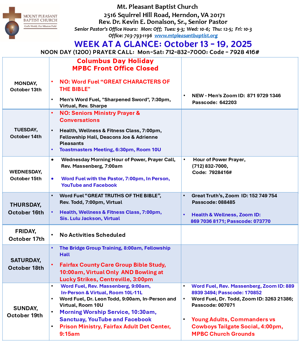 View the Schedule for In-person and Online Word Fuel (Bible Study) Classes